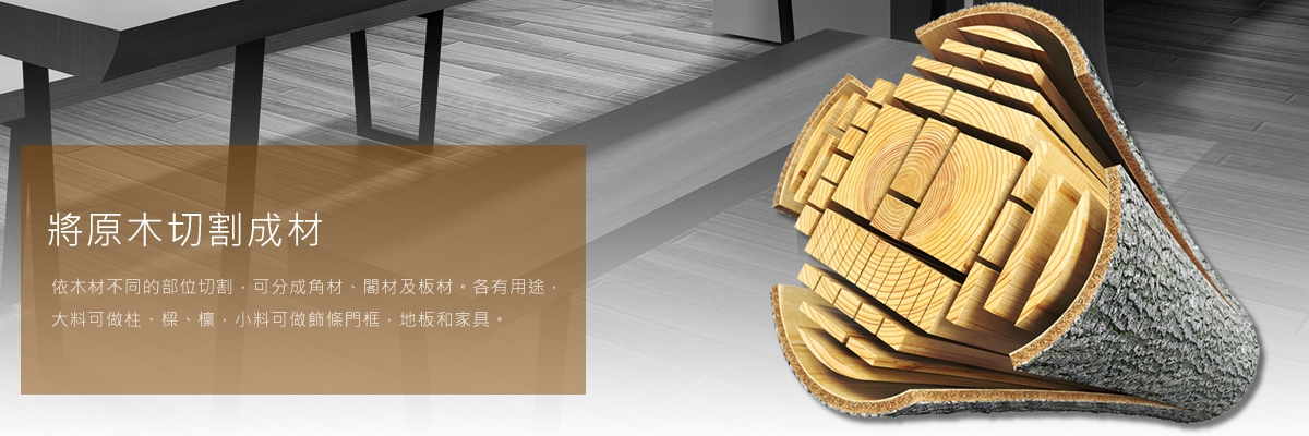 原木經過嚴格挑選,經過大型直立式鋸片機,做初步切割方形角塊,以利後續機器再次加工